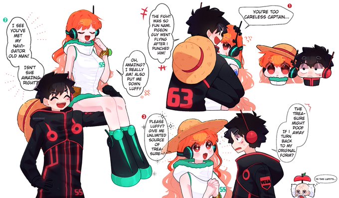Luffy and Nami's dynamic be like 👒🍊 -- #luffyxnami #lunami #namixluffy #luffynami #lunaonepiece #ONEPIECE #luffy #nami #art #Onepiecefanart #ワンピース #ルナミ #ルフィ #ナミ