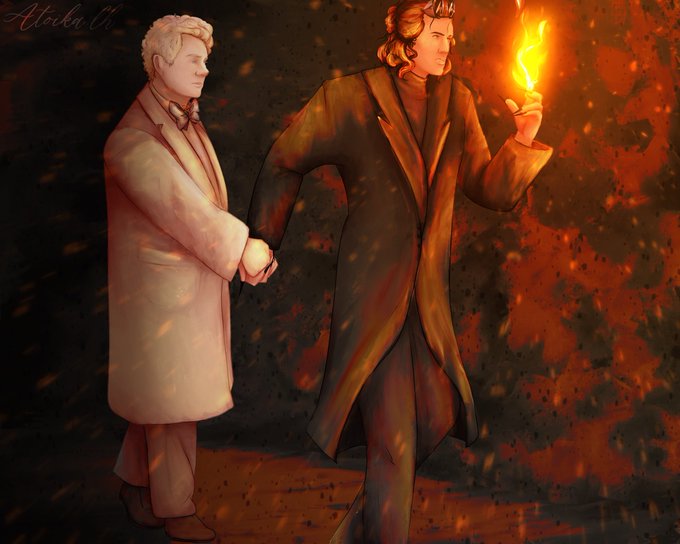 The Supreme Archangel Aziraphale and Crowley Grand Duke of Hell (I know Crowley won’t take the job, nor that we necessarily want him to… BUT- idk I think it’d be kinda hot) #GoodOmens2 #GoodOmensFanArt #ineffablehusbands #ineffablydivorced #GoodOmens #RenewGoodOmens
