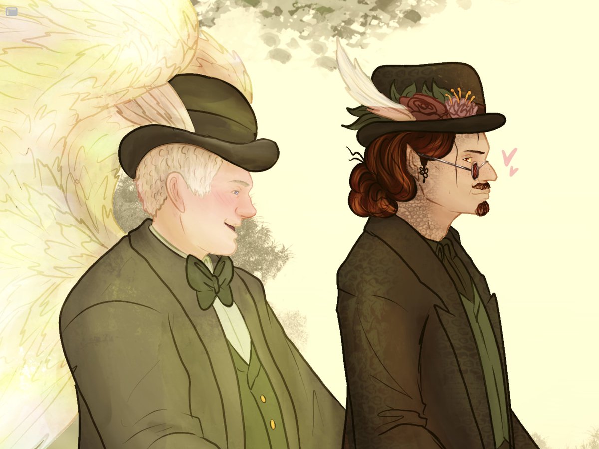 I believe in my heart that Shax went through Crowley’s wardrobe to make her outfits (The one on the right is from the extras) #GoodOmensFanArt #GOODOMENS2 #ineffablehusbands #GoodOmens #RenewGoodOmens