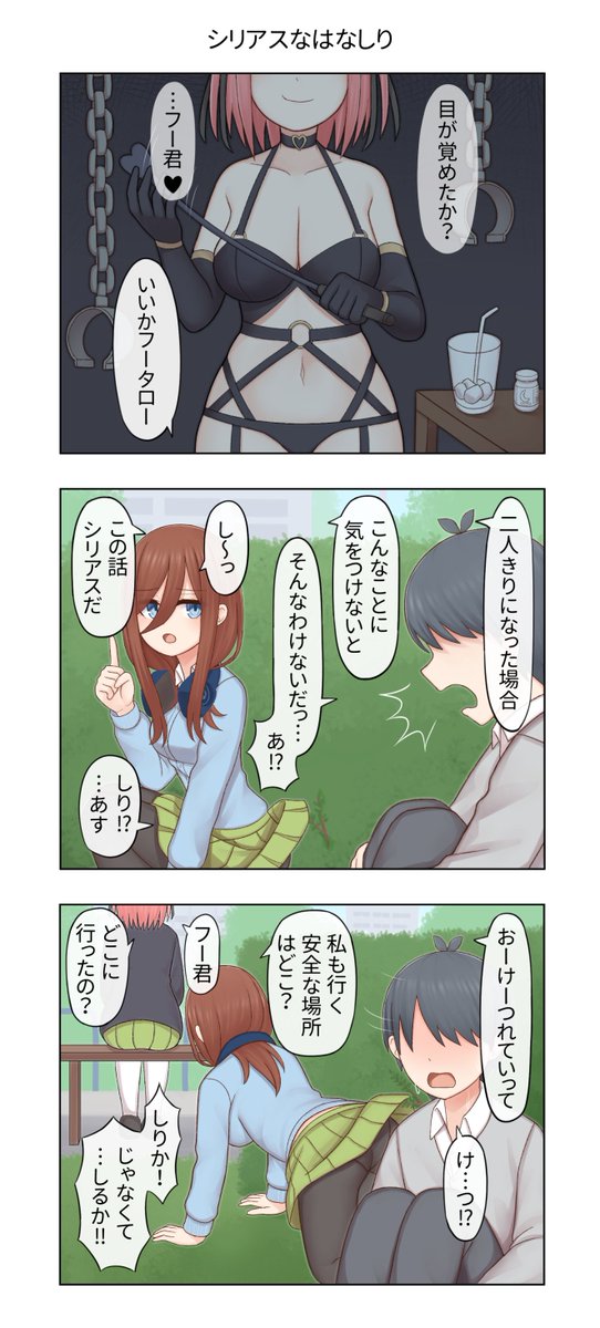 (1/2)普通のは二乃推しではないけど二乃の人気さを認める。それにもうすぐエイプリルフールなので、2パートだ。 #五等分の花嫁 #中野三玖