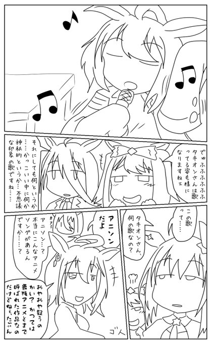 3 5 アグネスタキオンがカラオケでアニソンを歌うやつ描きました 22/10/09 01:48
