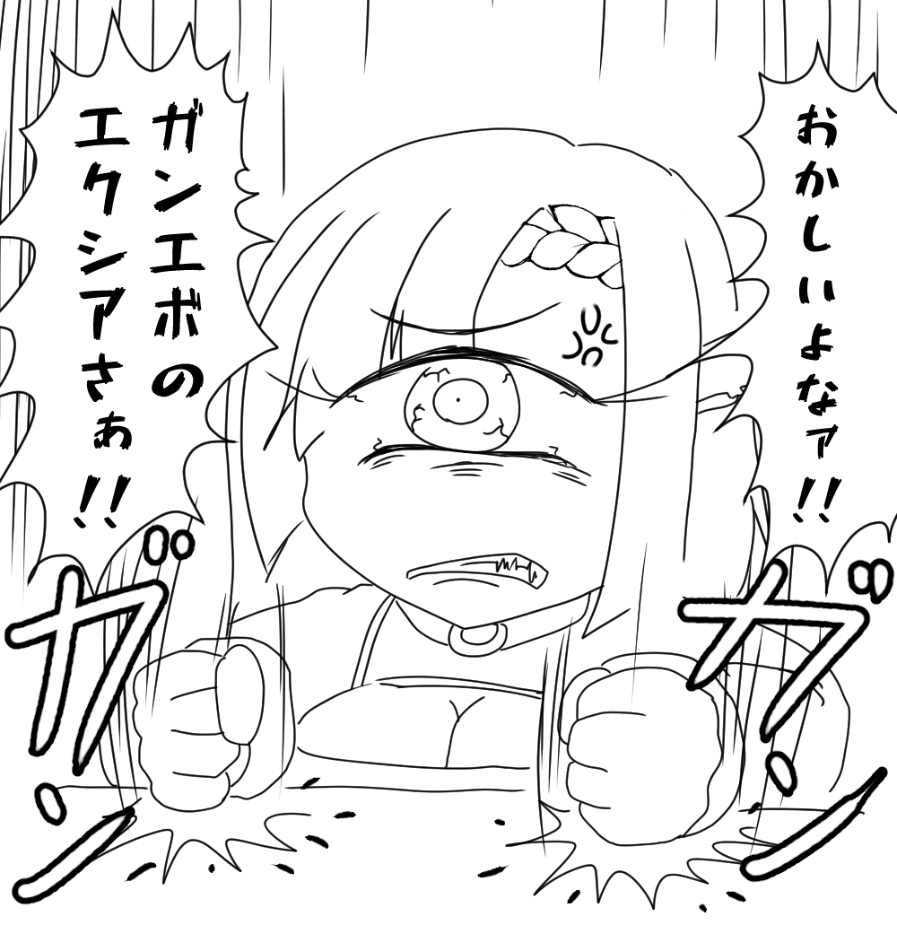 ガンエボのエクシアにキレてるアリシアさんを描きましたけど、単眼でキレさせるとガチめに怖くなっちゃう