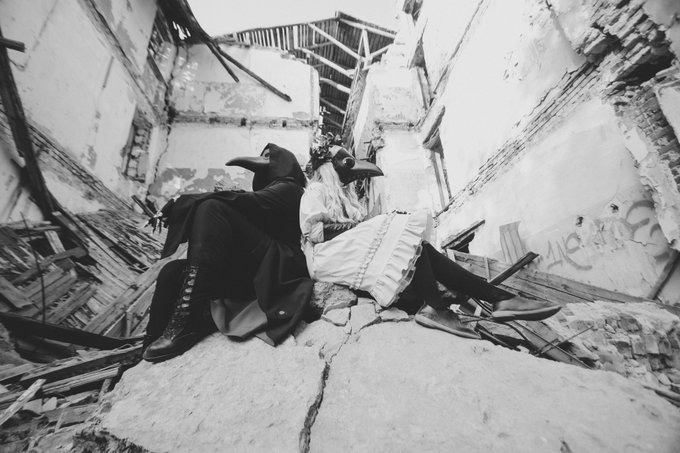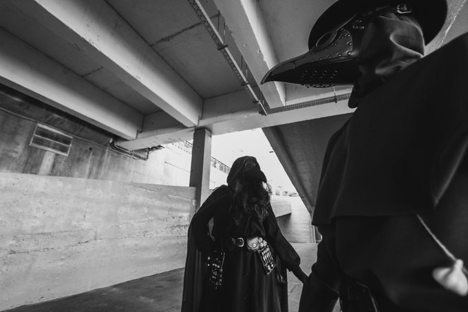 Two plague doctors, looking somewhere into the distance - either at the passing clouds, or at the gloomy future... #Plague_Doctor #cosplay #Чумной_Доктор #косплей #OriginalCharacter #fantasy #фэнтези #Cosplayer #Plague