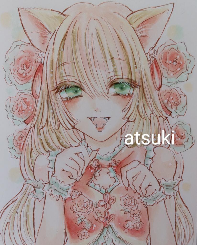 猫の男の子と女の子 猫耳とチャイナ服風な感じなど好きなものを詰め込みましたฅ^•ﻌ•^ฅ それぞれ違う色が使えて楽しかった(≧▽≦) #アナログ #コピック #イラスト好きと繋がりたい #絵描きさんと繫がりたい