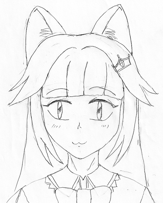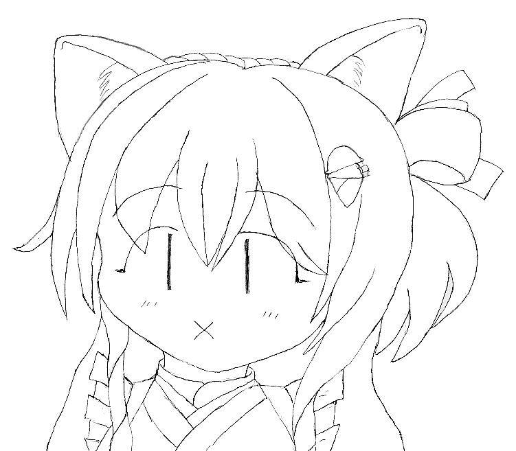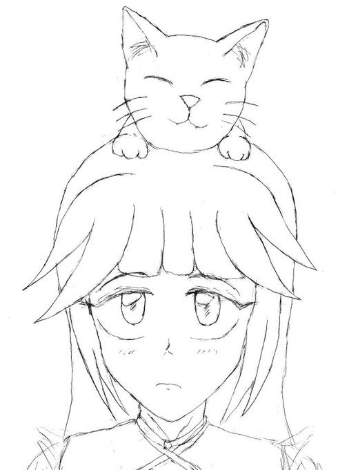 30分ドローイングで猫ミトさん描いてみる (少し手直ししました) ちょっと某猫娘さん入っているようにも見える・・・? #時雨煮アート