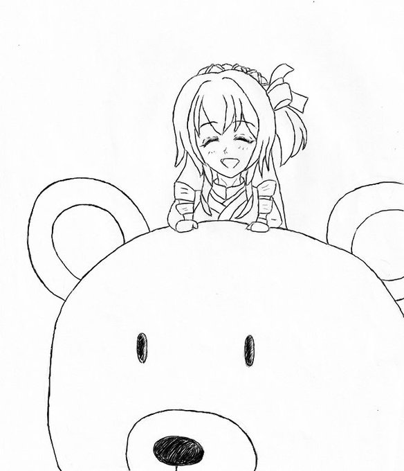 熊の上にころみんさん乗せてみる 昔使ってたソフトとタブレットを引っ張り出して 線入れてみたり #絵ころみん