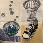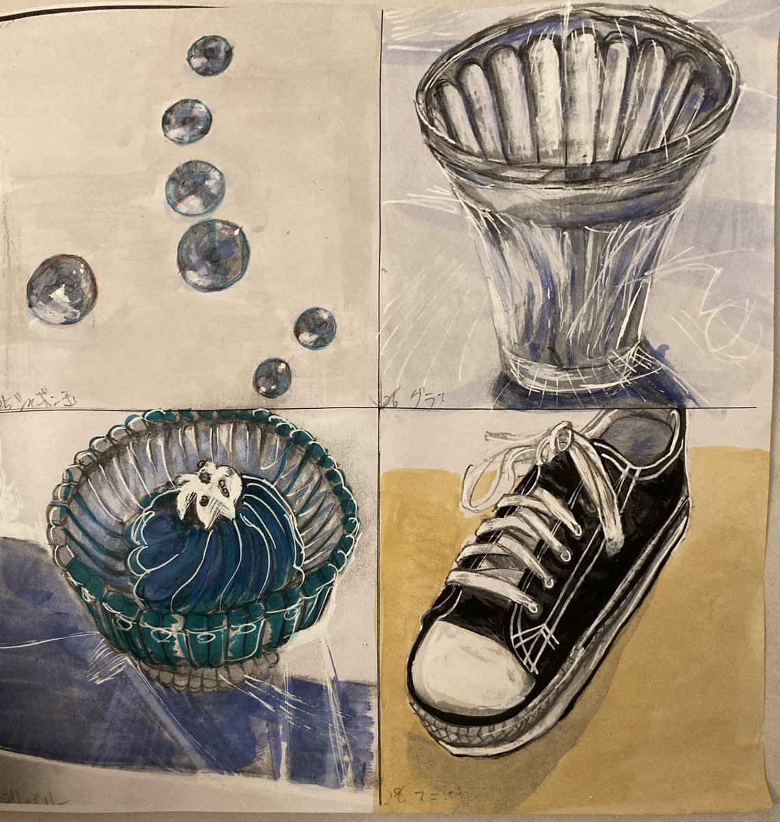 2 70 #日々描く #デッサン #水彩画 #静物画 紙風船と小物。前回同様に描きだしに失敗して時間がかかる。終わらなかったので次回に続く。 23/05/20 22:54