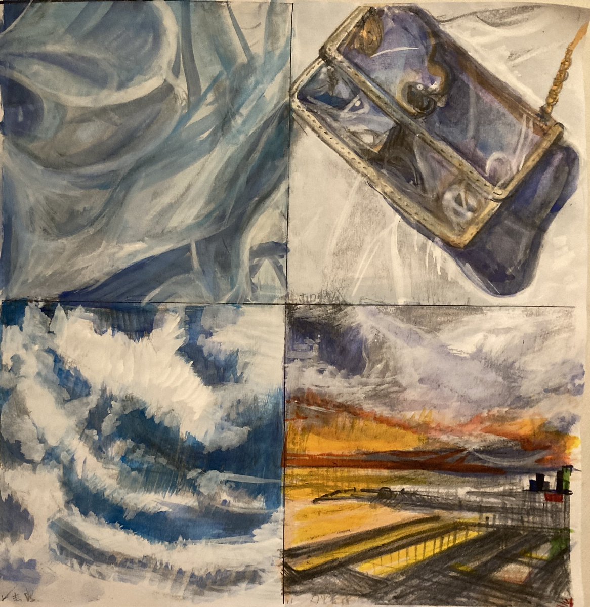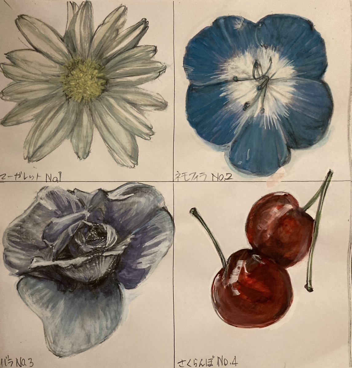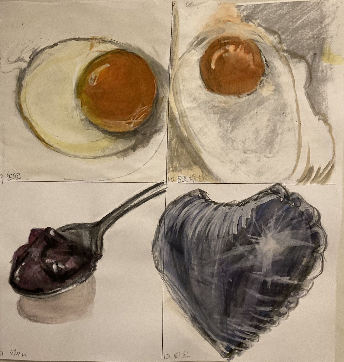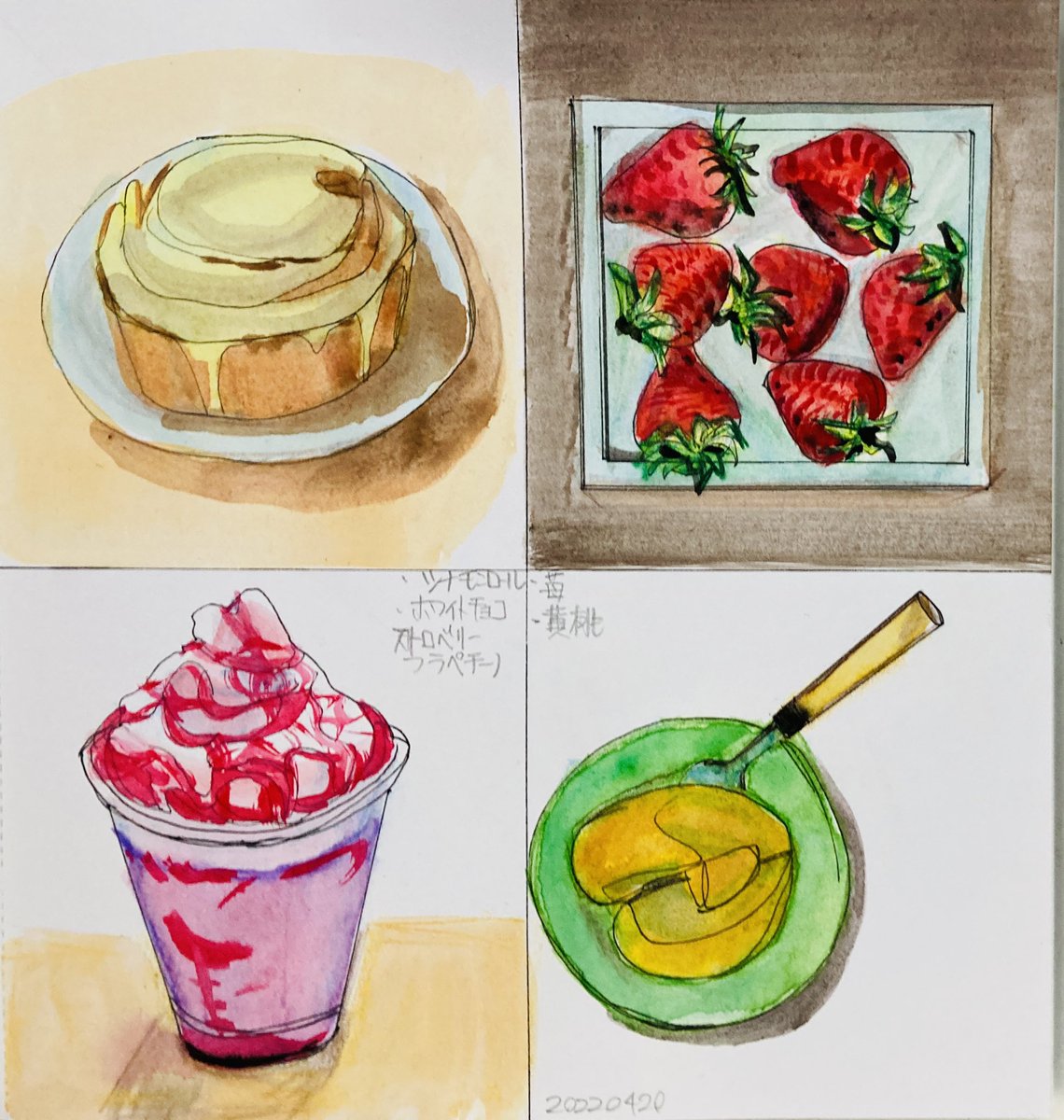 4 100 #dairy #日々描く #水彩画 写真フォルダから。上げ直し。up後に人物の変なとこ見つけて気になりすぎて削除した。人物難しい😵😵😭。静物画は昨日分と併せて。 22/04/27 17:17