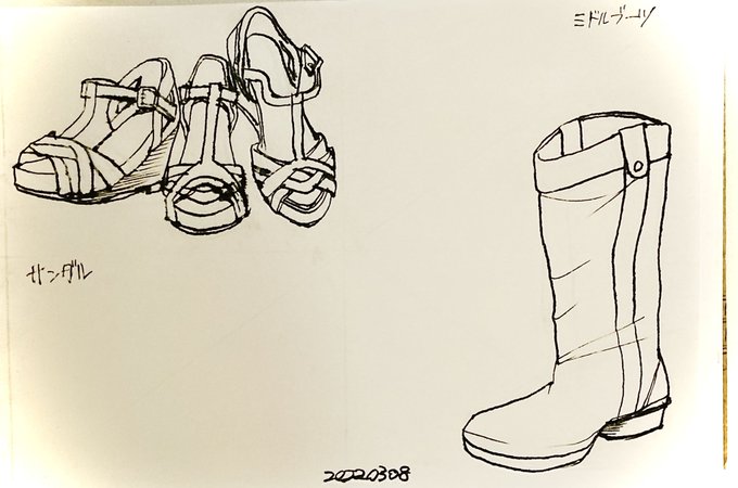 8 89 #5分で描く #日々描く あしっくすカタログから。処分前に眺めてたら可愛かったから描きました。沢山描きたいけど細かくてギブです。時間オーバー。靴絵も、楽しいね。 22/03/08 23:46