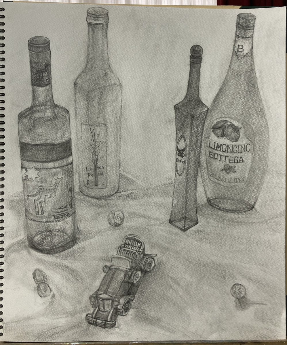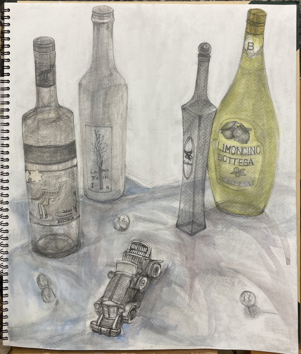 4 62 #日々描く #静物画 #デッサン #水彩画 基礎課題で瓶。完成。本日も無理矢理終わらせた。ほぼ休憩も取らずで描いたので全力疾走した気分。気になる部分もあるけど今後の課題にする。 23/06/17 22:20