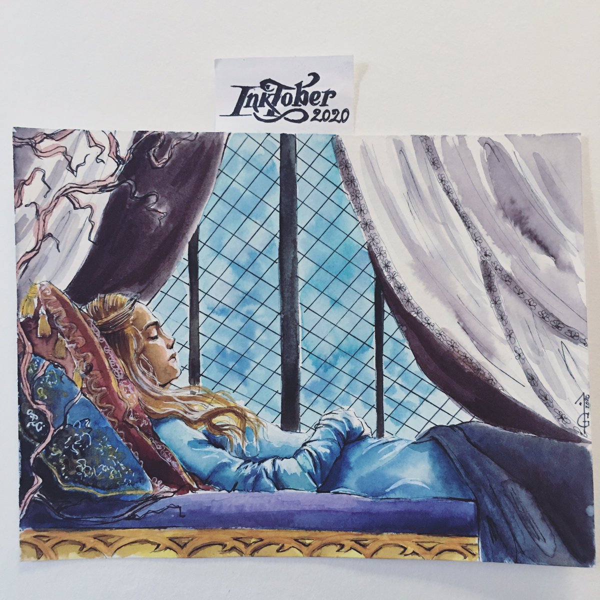 #Inktober Day 21 : sleep My artwork inspired by @ellefanning as #princessAurora for @disneymaleficent Made with @CopicEurope liners, @Pebeopaints colorex on @Hahnemuehle_FR watercolor paper. #thesleepingbeauty #maleficent #disneyprincess #aurora #ellefanning #inktober2020