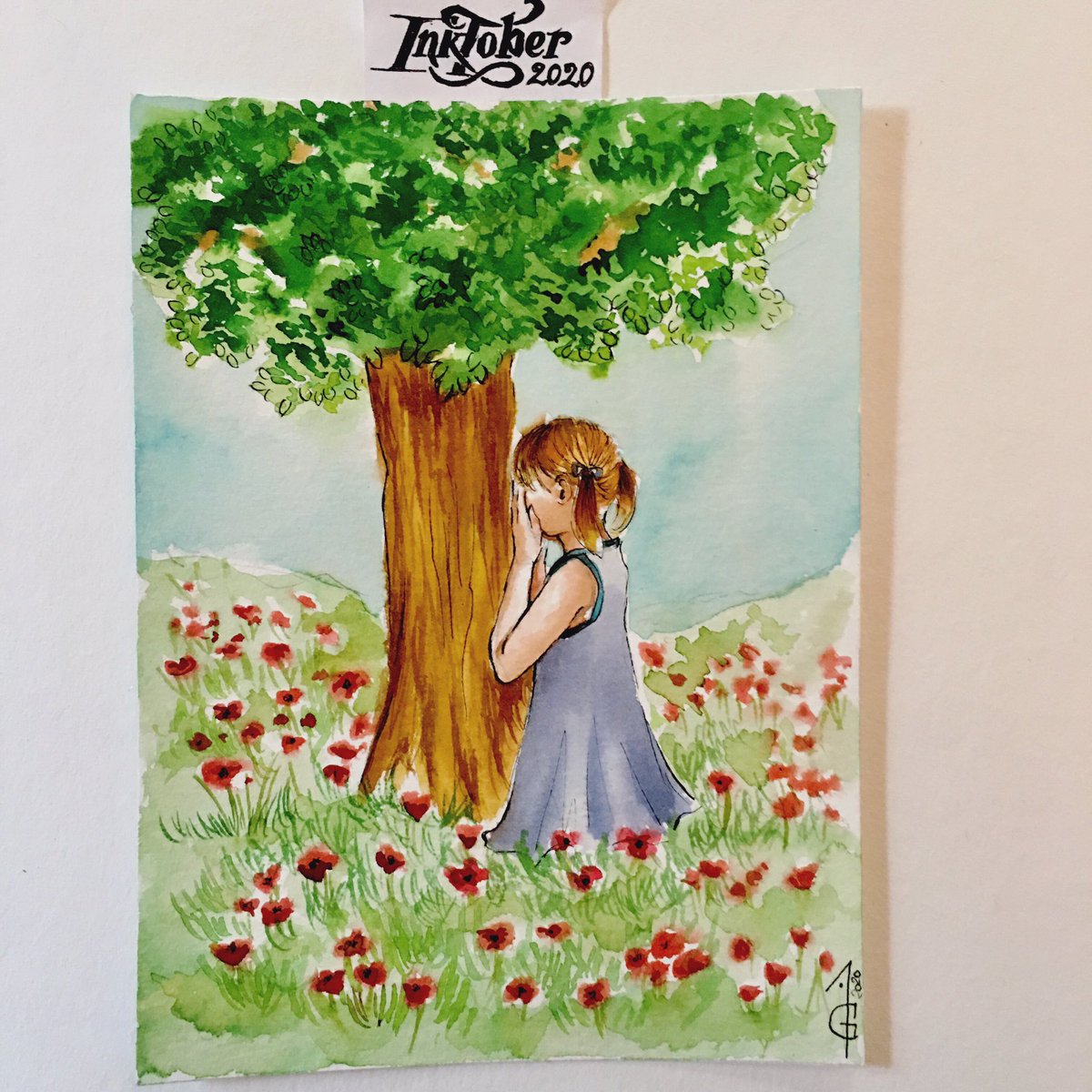 #Inktober Day 26 : hide ... and seek Made with @CopicEurope liners, @Pebeopaints colorex on @Hahnemuehle_FR watercolor paper. #inktober2020 #hideandseek #childhood #art #artist #artwork #drawing #dessin #illustration