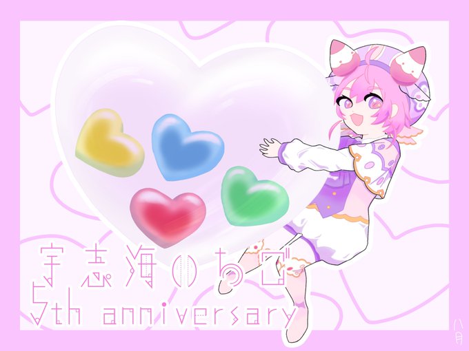 🍓いちごちゃん5周年おめでとう🍓 ありがとうのはーと5こあげる #いちごのあとりえ #いちごの武器庫