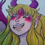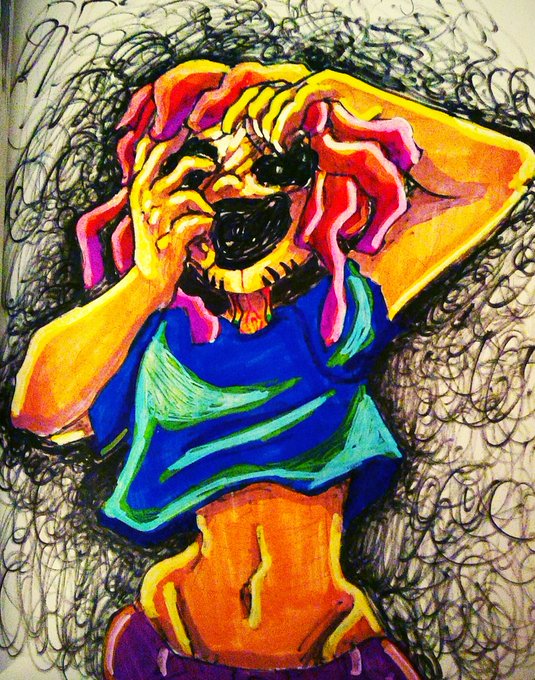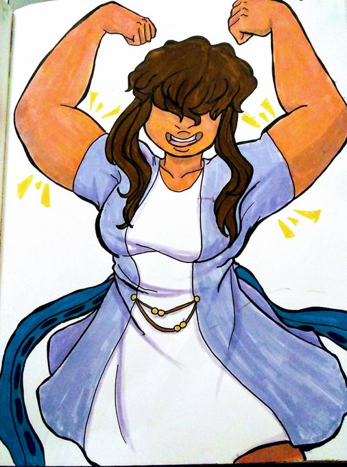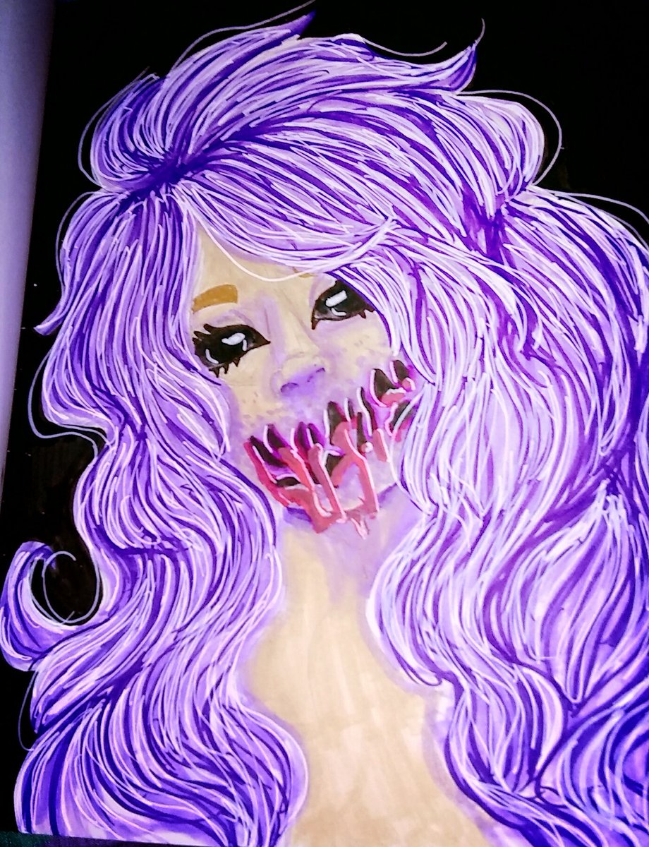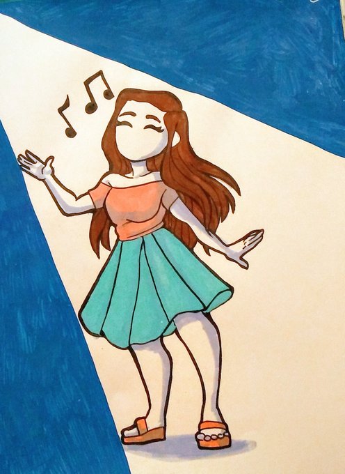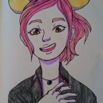 Day 8 of #Inktober2019 with @_RebeccaParham and the theme song. Drawing someone without a mouth who isn't a monster girl was an experience 😂 #inktober #Inktoberday8 #posca #tombow #Spotlight