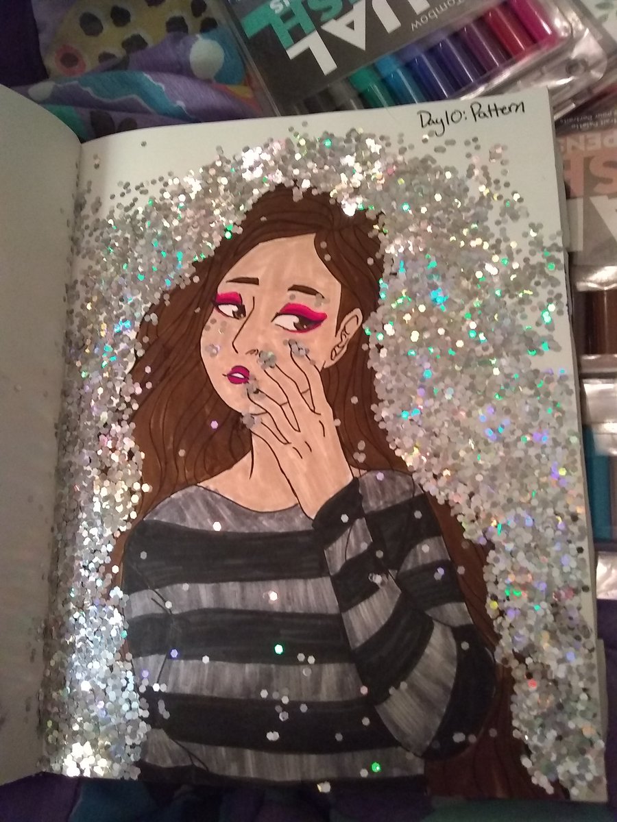 A lot of glitter everywhere for #inktober day 10 with @nailogical and the theme pattern. I didn't mean for all the glitter but it make sense for the Holo Queen herself. #Inktober2019 #simplynailogical #Holo #holographic #tombow