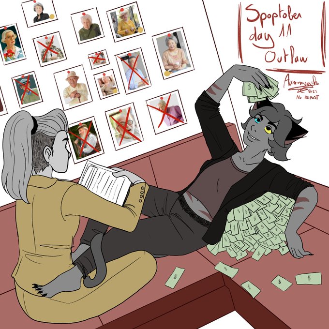 SPOPTOBER DAY 11 : OUTLAW They both live their best money life ! That's a direct reference to a movie, will you guess which one ? :D Prompt list (below) by @RinniiArt #inktober #inktober22 #catradora