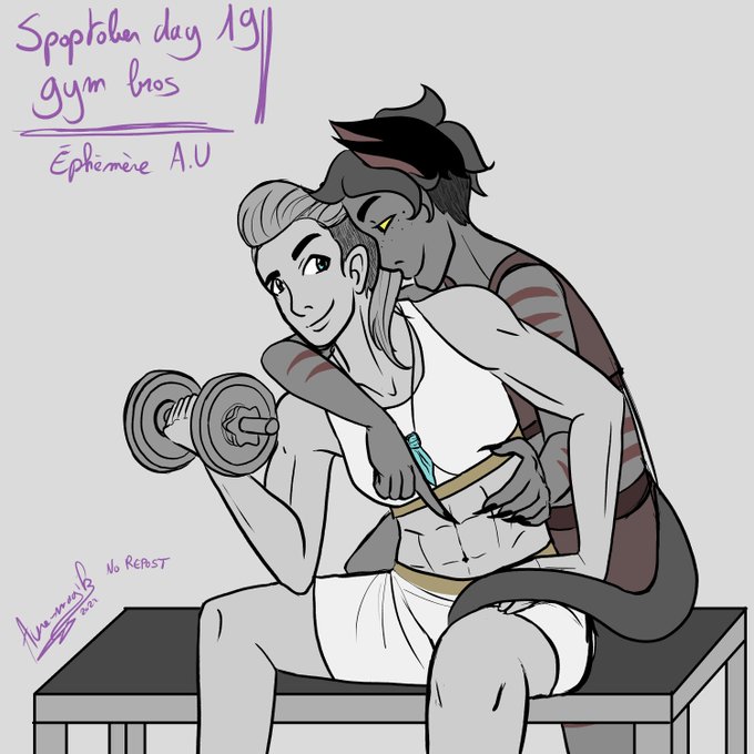 SPOPTOBER DAY 19 : GYM BROS Here is a little drawing from Éphémère A.U, when everything was great for them both ! Catra is helping Adora at gym ... They are "besties" ... Prompt list from @RinniiArt #Inktober #spoptober #Catradora