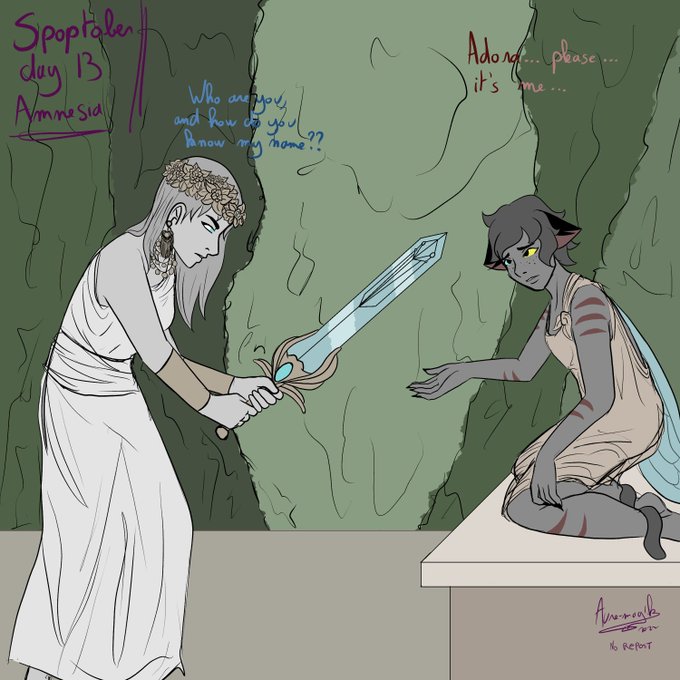 SPOPTOBER DAY 13 : Amnesia This is about my greek mythologie AU (which I really should find a name) ! Did Adora forget Catra ? You will need to wait the fanfiction to know about it ... Prompt list (below) by @RinniiArt #inktober #shera #catradora #lazybackground