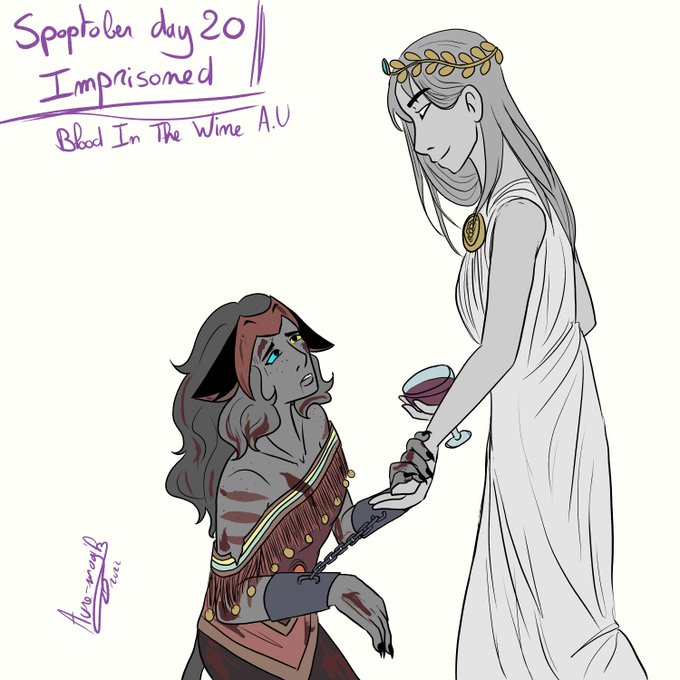 SPOPTOBER DAY 20 : IMPRISONED Finally an inktober about my Blood In the Wine AU ! Ppl who already read it on Ao3, you surely recognize a chapter 2 scene ! Ao3 link below Prompt list (below) by @RinniiArt #inktober #catradora #greekmythology