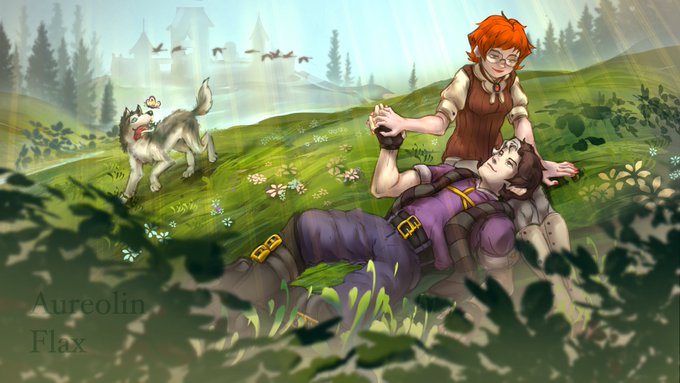 Boosting this because #commissionsopen is trending 👀 Adding a couple of examples :) #DnD #dndart #fantasyart #originalcharacter #commissions twitter.com/AureolinFlax…