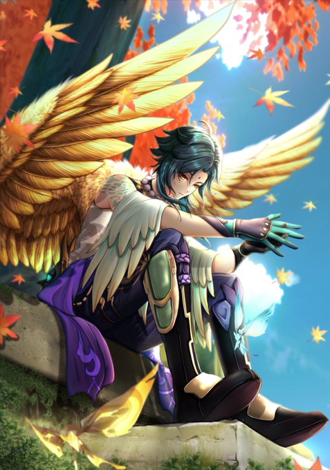 golden wings 😊 #魈 #xiao #原神 #Genshinlmpact #genshinimpactfanart stickers here 👉redbubble.com/shop/ap/129821…
