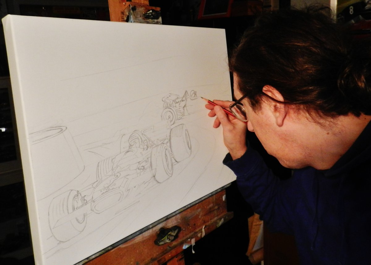 First full canvas of 2020 underway 'Rindt vs Brabham Monaco 1970' #F1 #ArtistOnTwitter #Monaco #commissionsopen