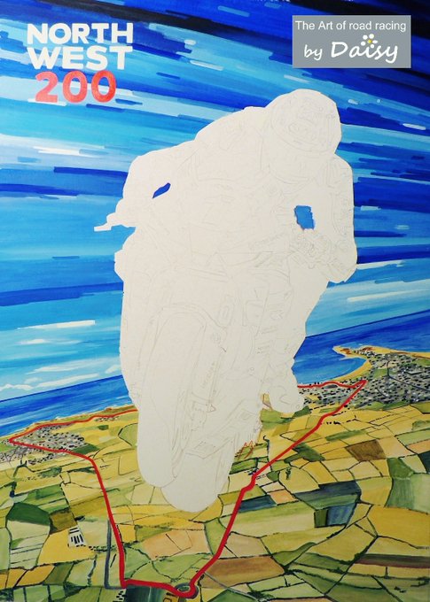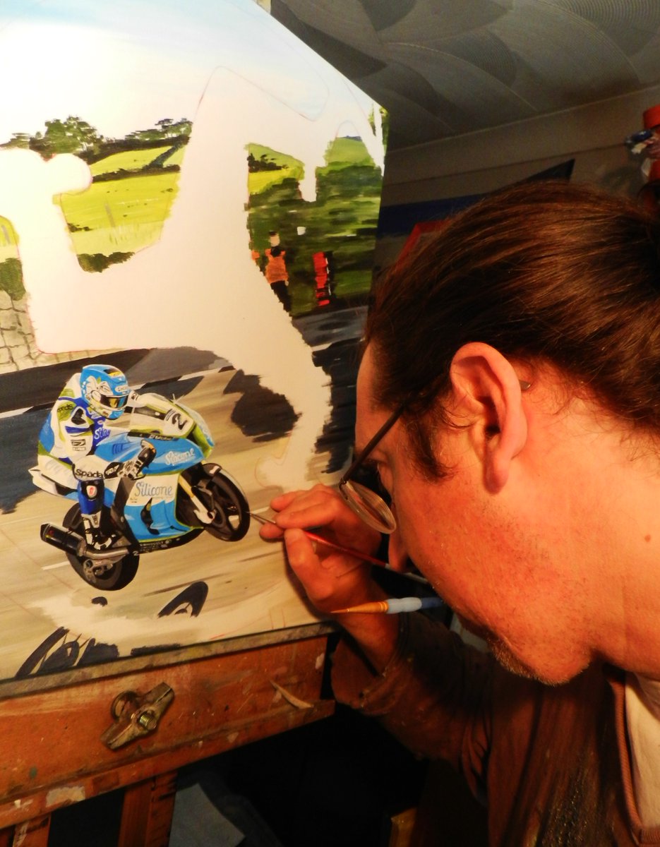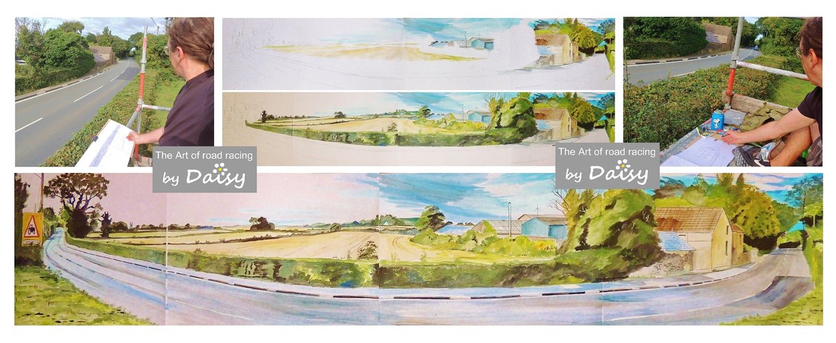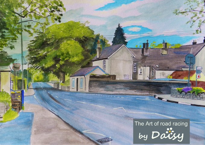 First roadside sketch of TT 2022: Crosby Crossroads 2 hours 40 minutes (Acrylics on paper 15x10 inch) #LoveTT #ArtistOnTwitter #IOMTT