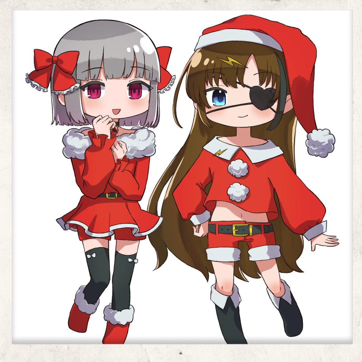 【お仕事報告】 ⚡️芳乃シズルさん⚡️ 🎀流月莉桜さん🎀 お2人のサンタコスを描かせて頂きましたー! シズルさんのこだわりと僕のこだわりを詰め込んでデザインしました! デフォルメで超絶可愛〜く描きましたよ〜!🎅🎄🎊 表情差分もちょこっとあるので見てっておくれ〜〜〜!!! twitter.com/shizuruyoshino…