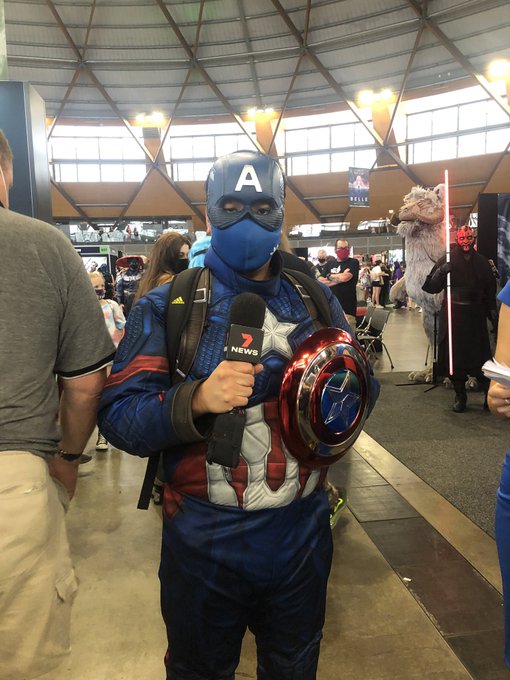 This is Captain America, reporting for @7NewsSydney ! #OzComicCon #OZCC #7NEWS #CaptainAmerica #cosplay