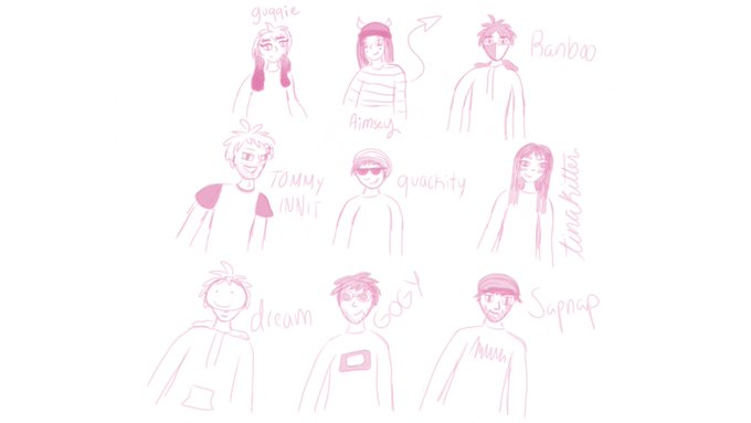 some semi-crappy mcyt doodles for you <3 :) #dsmpfanart #dreamfanart #tinakittenfanart #aimseyfanart #ranboofanart #guqqiefanart #tommyinnitfanart #gnffanart #sapnapfanart MWAHAHAA A MILLLION HASHTAGS MWAHAHAH