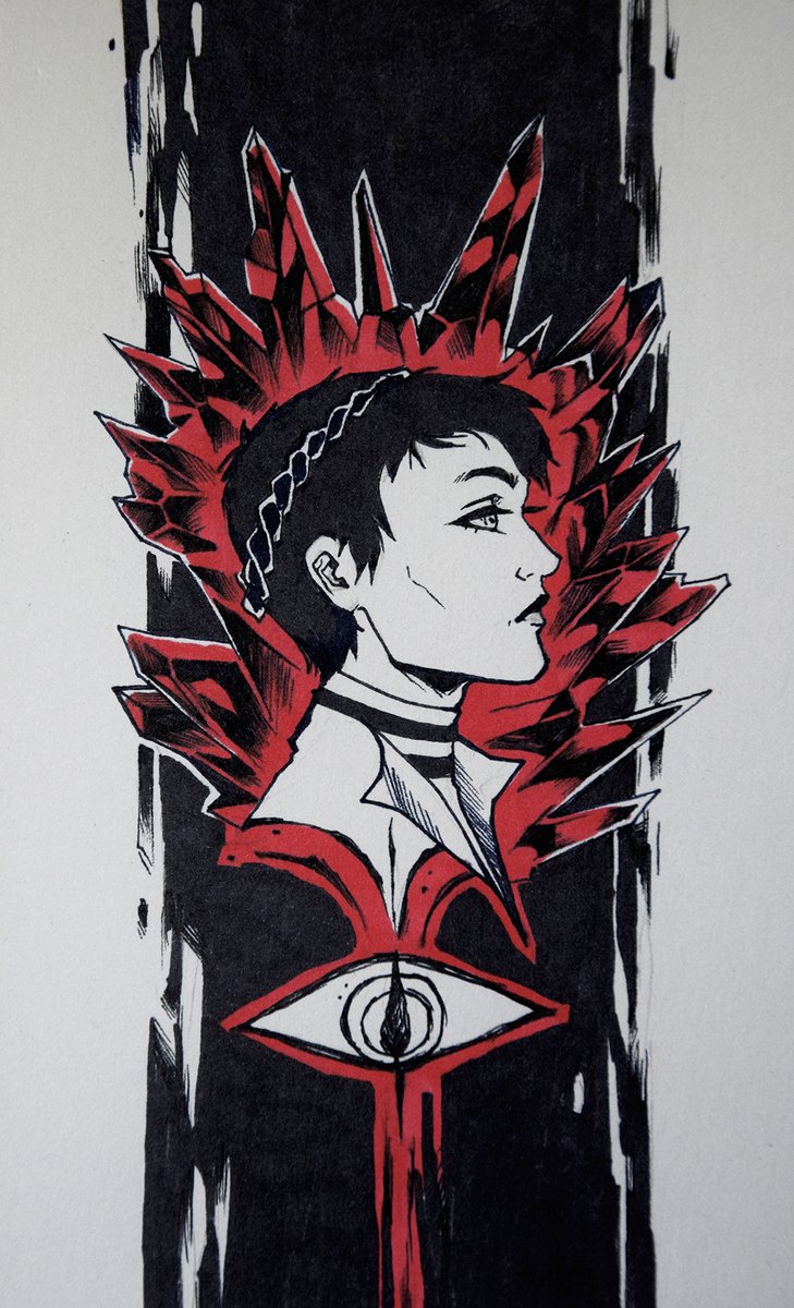 #inktober2021 Red lyrium is just perfect for day 1 theme: Crystal. I throw away first drawing because paper drank too much of ink and everything got blurred. I'll change tools tomorrow to deliver better quality:) #DragonAge #Inktober #fanart #ink #Cassandra #dai #FanArtFriday