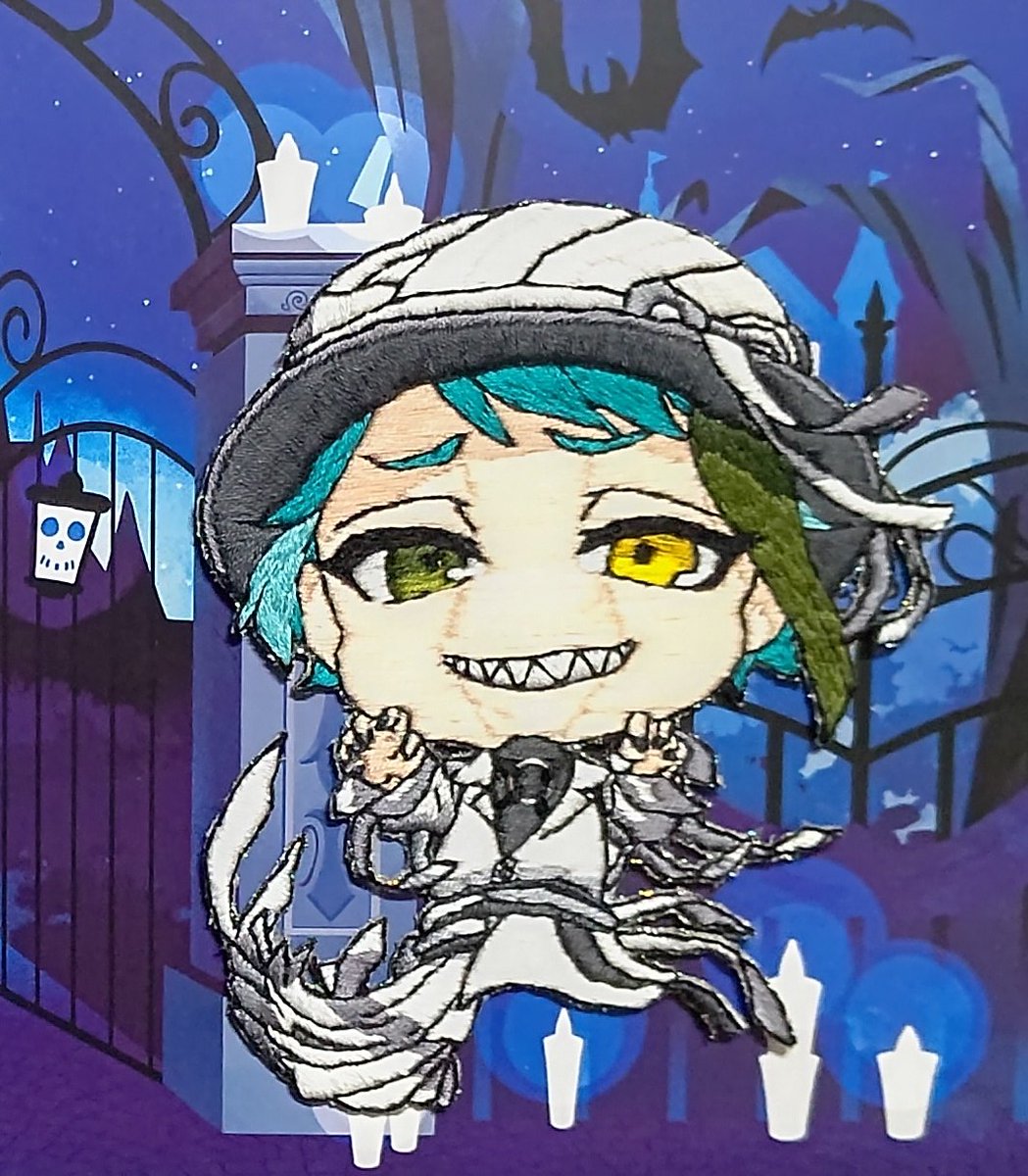 ゆるっとツイ販第2弾✌️ 👻Halloween🎃企画製作 今回はオクタ推しの方 御注目🤗 手刺繍によるアートフレーム 背景は昼or夜2種より選択 お好みの方で最終仕上げ それぞれ一点物🌟 拡散してくださると嬉しいです🙏 #twstファンアート #フロイド・リーチ #ジェイド・リーチ #まじょまじょアート