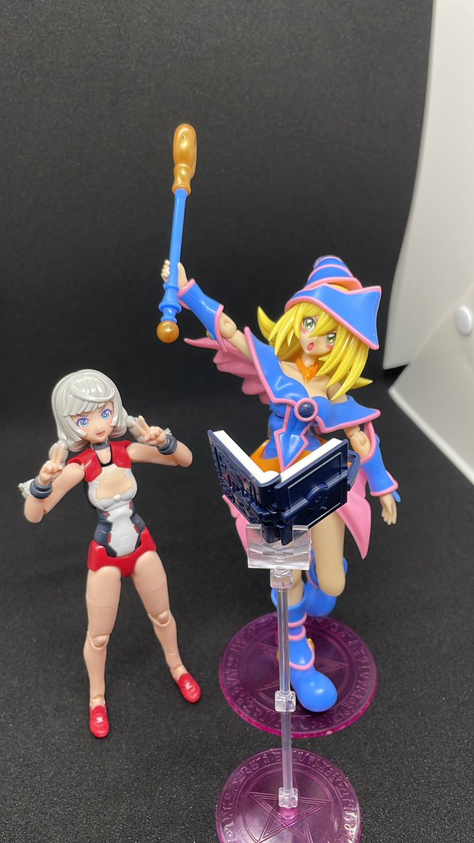 ぺぺろさんと並走してたブラックマジシャンガール完成。昼間作ってた赤ずきんも素体まで完成。赤ずきんの武装は明日やろう。 #ぺぺろと並走 #メガミデバイス #フレームアームズガール