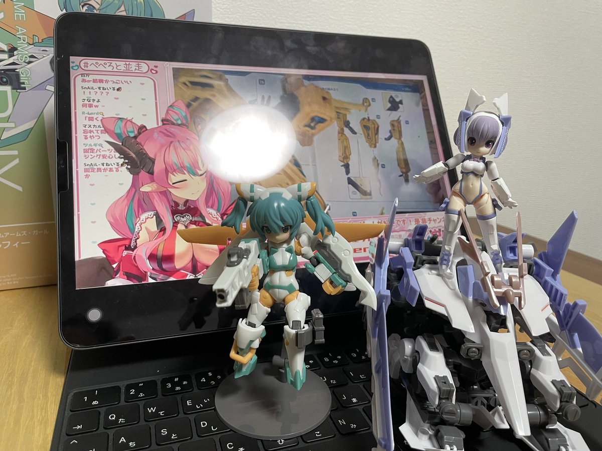 0 23 今日はフレガのシルフィーとデスクトップアーミーで並走。 #ぺぺろと並走 #フレームアームズガール #デスクトップアーミー 22/09/24 00:22