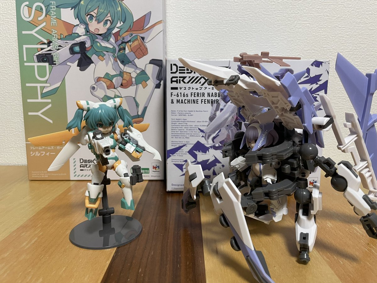 今日はフレガのシルフィーとデスクトップアーミーで並走。 #ぺぺろと並走 #フレームアームズガール #デスクトップアーミー