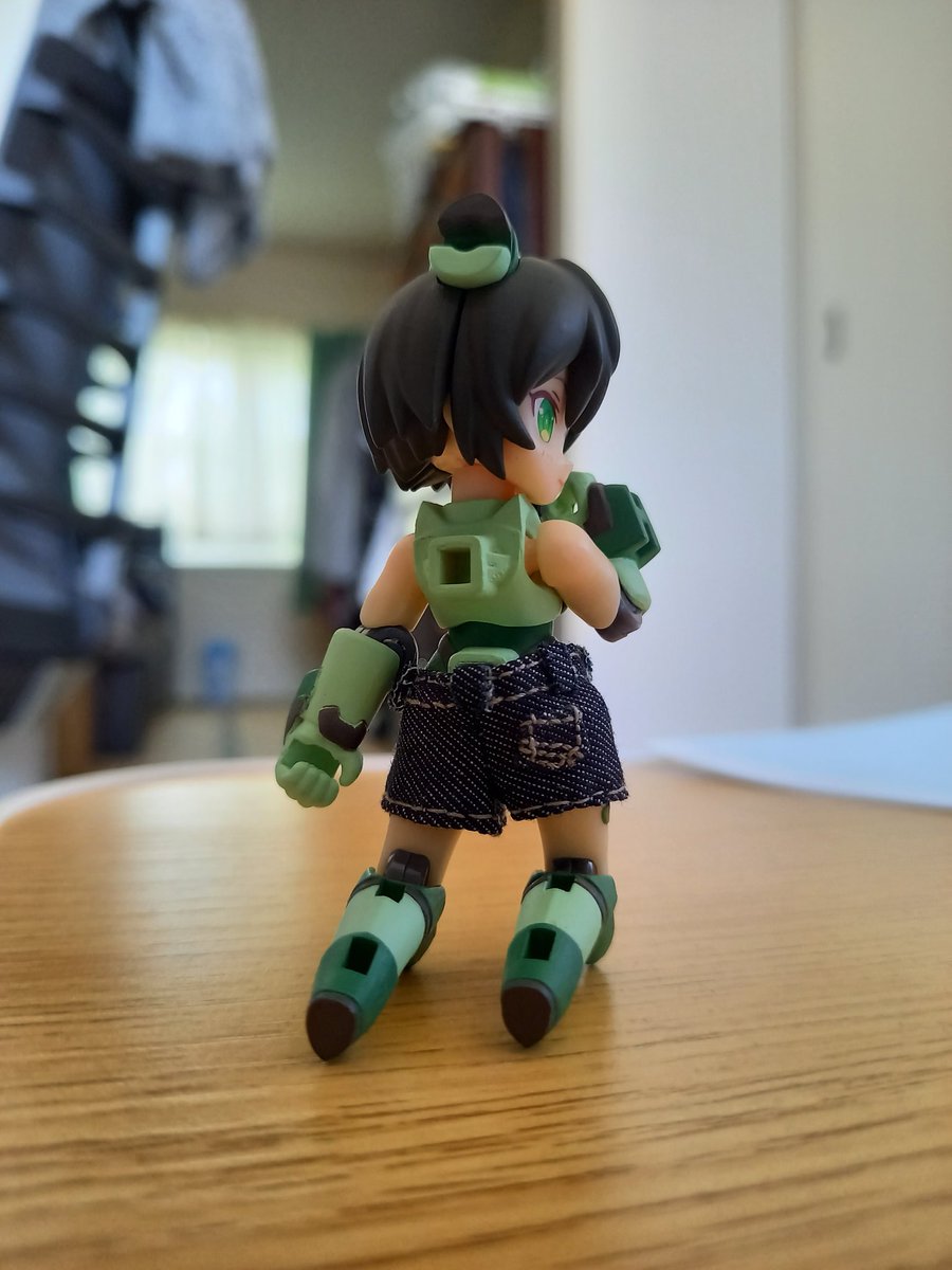 【コンテスト参加】【応募条件に同意します】【軽装】#デスクトップアーミー #メガミデバイス フルールのとある一日 モデルとしてお仕事を貰った写真の一部。 流行りのギャルピースをしてみたんだって。 パンツが短くってポイント!って言ってた。 ネイルもこの日のためにしたんだって。