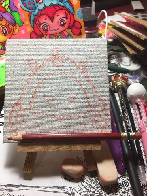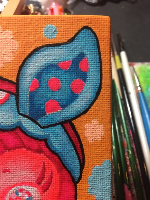 Finishing soon🥰💖色塗り経過です〜\( ˆoˆ )/ 創拡 イベントの準備で一時停止していた仕上げ再開しました😋🙇♀️ #artist #ArtistOnTwitter #painting #イラスト #wip #イラスト好きな人と繋がりたい #絵描きさんと繫がりたい #夏の創作クラスタフォロー祭り #かわいい #アクリル画 #アナログイラスト
