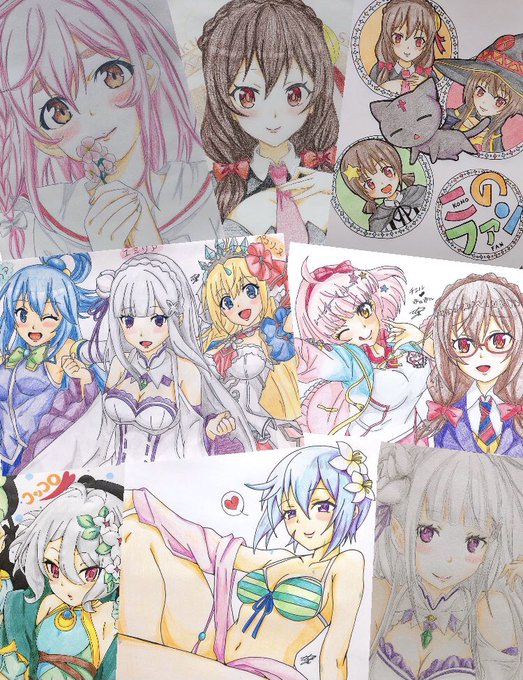 2日ぶりの落書き! SAOのユウキ・直葉・エギル(おまけ笑) このファンのメイドミーア と声を頂いてたので 一気に4枚落書きしました! 所々失敗してしまいましたが 楽しかったヽ(*´з`*)ノ #SAO #このファン
