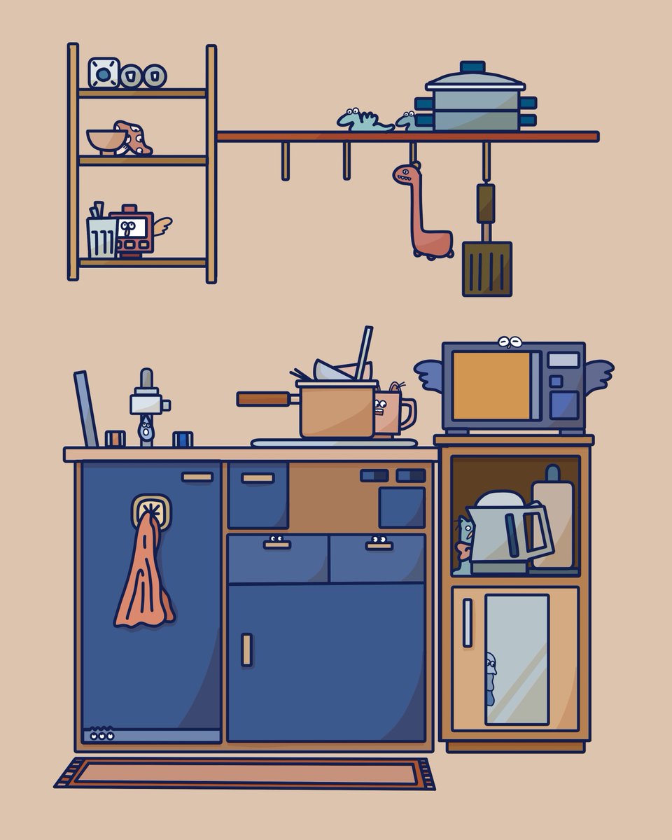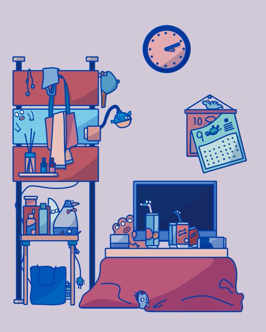 日常に潜むユカイな生き物たち② ⏰🥤🪴☂️ #絵描きさんと繋がりたい #イラスト #illustration
