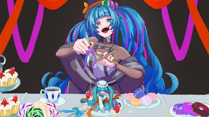 #ボカコレ2022秋絵師アワード 悪い笑みミクちゃんズ😈 味見したくなるようなお菓子もたくさん添えました🍭 akairoさんの曲も是非聴いてください🥳 「テスター」feat.初音ミク by @akairo_________ ■niconico nicovideo.jp/watch/sm411869… ■YouTube youtu.be/PbFqz9Yl02M