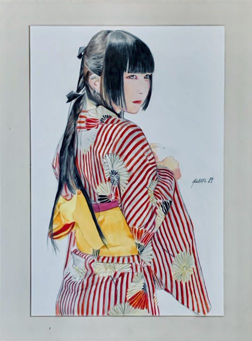 0 3 終わらん😢 #浴衣 #色鉛筆画 21/10/14 07:51
