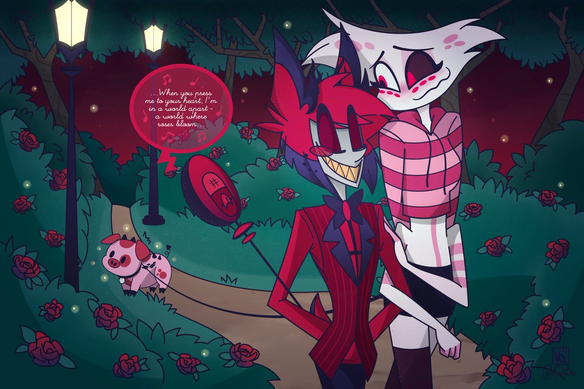 Happy Valentine's Day!💕 I'm a LITTLE late, but blame the pin / sticker design for that (the animation is still a WIP, but the drawing is a variation of the final frame)!🍫 #HazbinHotel #RadioDust #HazbinHotelFanart #HazbinHotelAlastor #HazbinHotelAngelDust