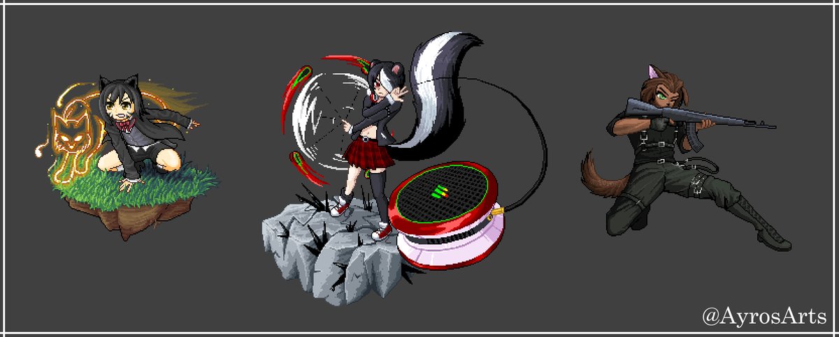 I made some sprites for a collab hosted by @ryonari_ Characters are not mine. One belongs to @neuroxrd and another to @Dear_Xela #oc #pixelart #ドット絵