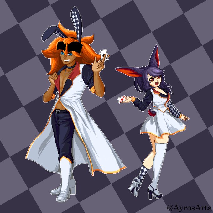 9 14 I made some sprites for a collab hosted by @ryonari_ Characters are not mine. One belongs to @neuroxrd and another to @Dear_Xela #oc #pixelart #ドット絵 23/05/09 09:48
