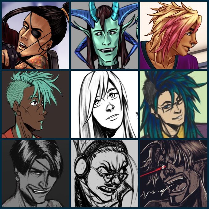 Did two #FaceYourArt collages because tbh As much as I love my finished pieces, I LOVE how my more sketchy/greyscaled pieces look Also I’m right handed and I’m surprised by the amount of right facing faces I have LMAO