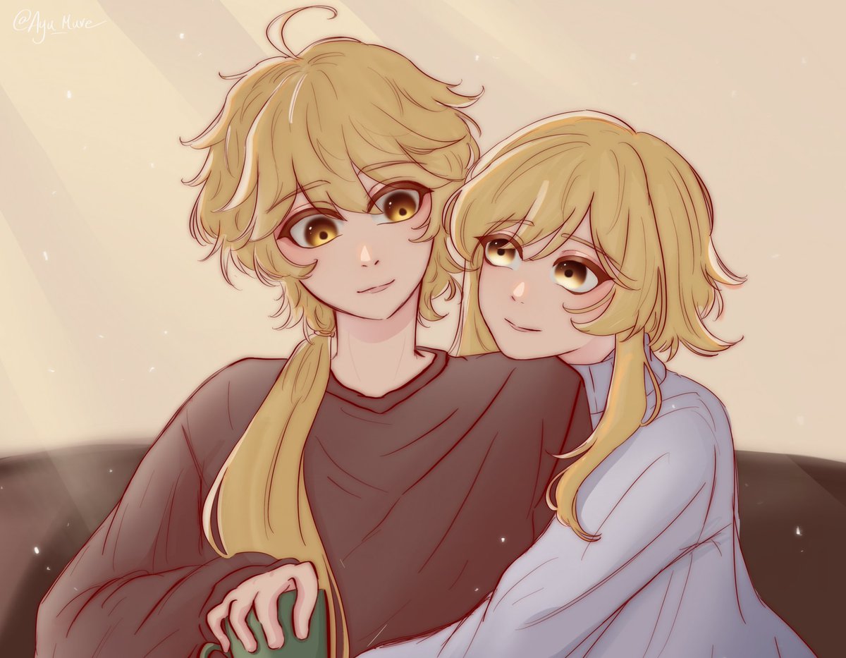 The siblings switched hair styles! #genshinimpactfanart #Aether #lumine #GenshinImpact