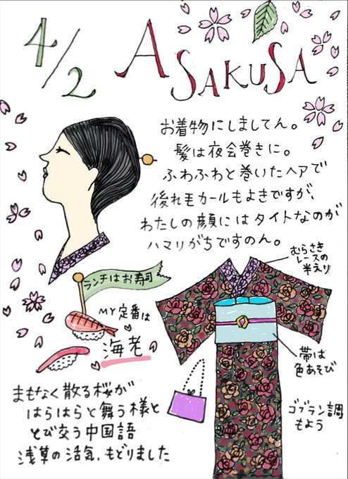 0 1 浅草きもの絵日記 #イラスト 23/04/04 18:56