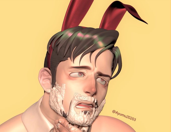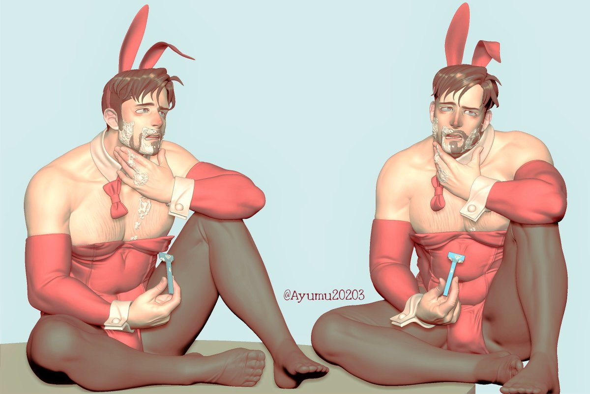 37 263 「髭剃りバニー」 うるさい宴会が終わり、みんなが雑魚寝をしはじめた頃、先輩は埃っぽい倉庫のまんなかで、雪が降る窓の外を見ながら髭を剃っていた 次回ガレージットにします 自分が欲しいだけ 胴体の情報量が色々あれなのでヌード設定です🐰 23/06/07 22:04