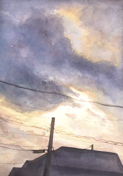 16 256 空を見上げると。 過去に描いた絵を描き直してみました。 #透明水彩 #watercolor #透明水彩研究会 23/07/17 19:23