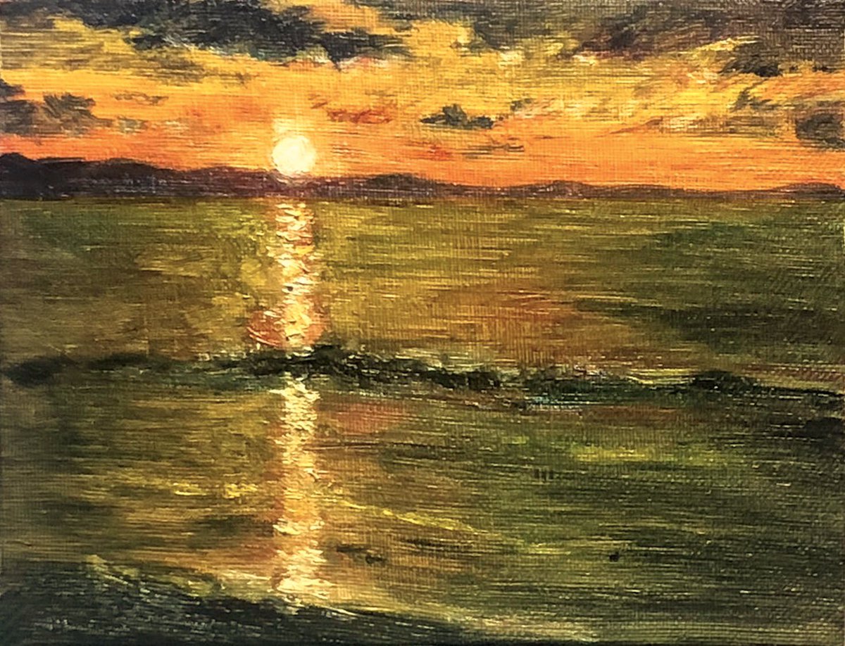 日の出。🌅 久しぶりに油絵で描いてみました。